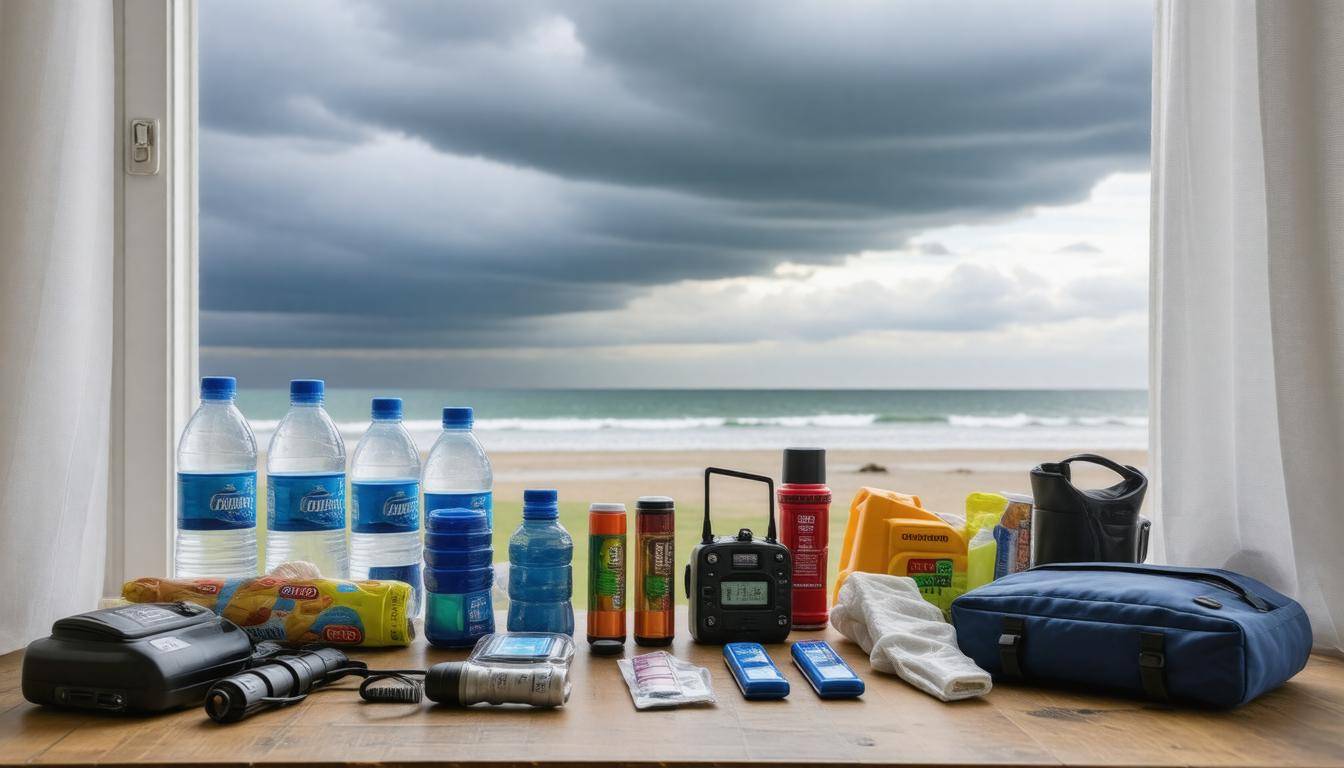 What supplies should I stock up on before a storm hits at the beach?