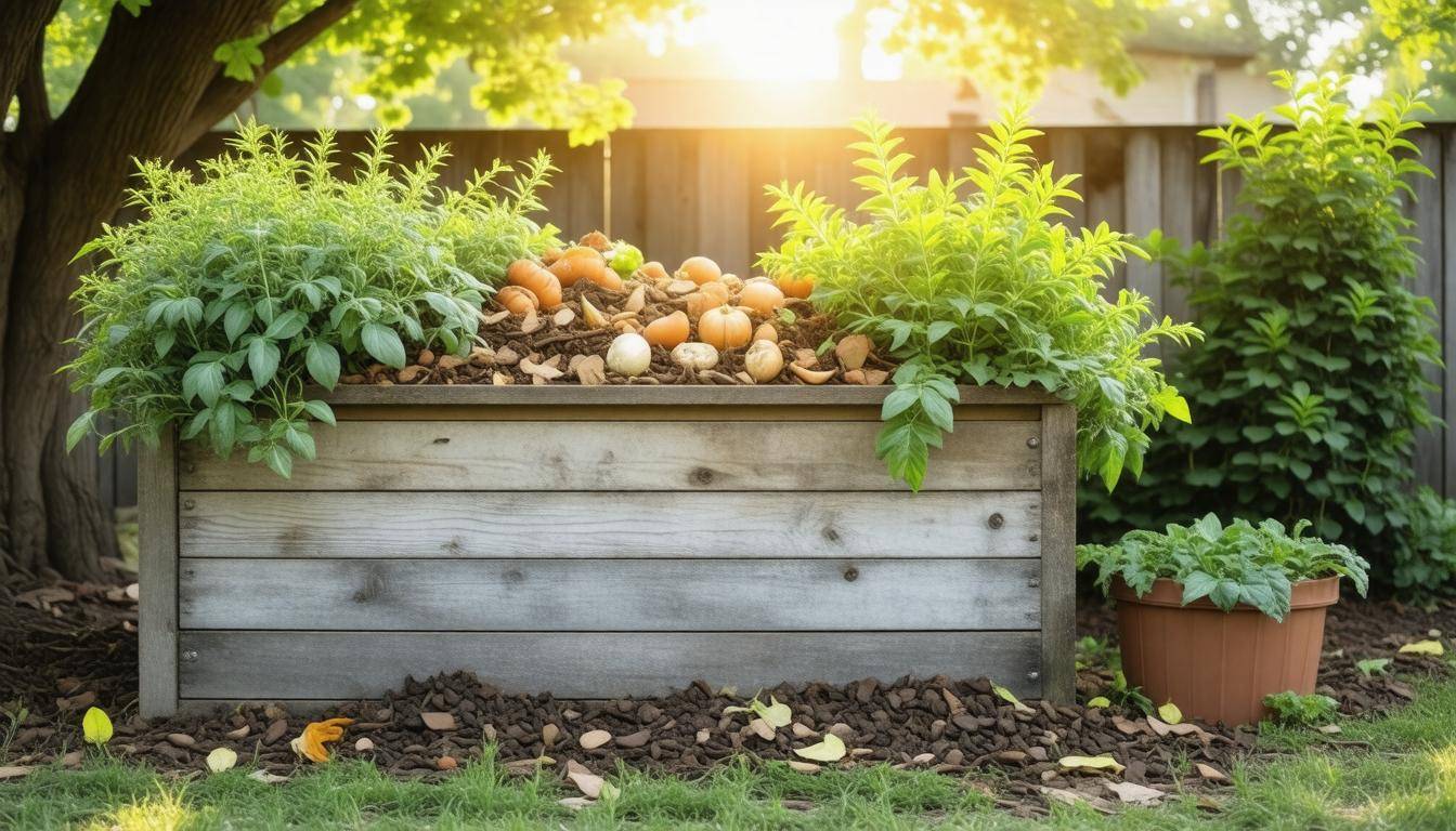 Compost setup with herbs